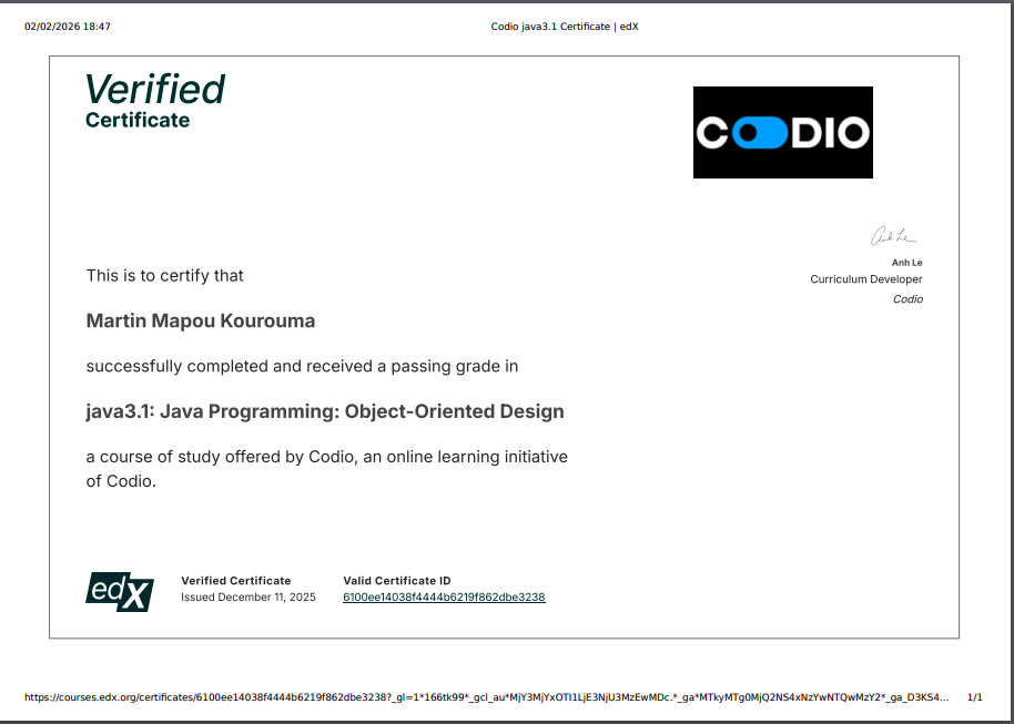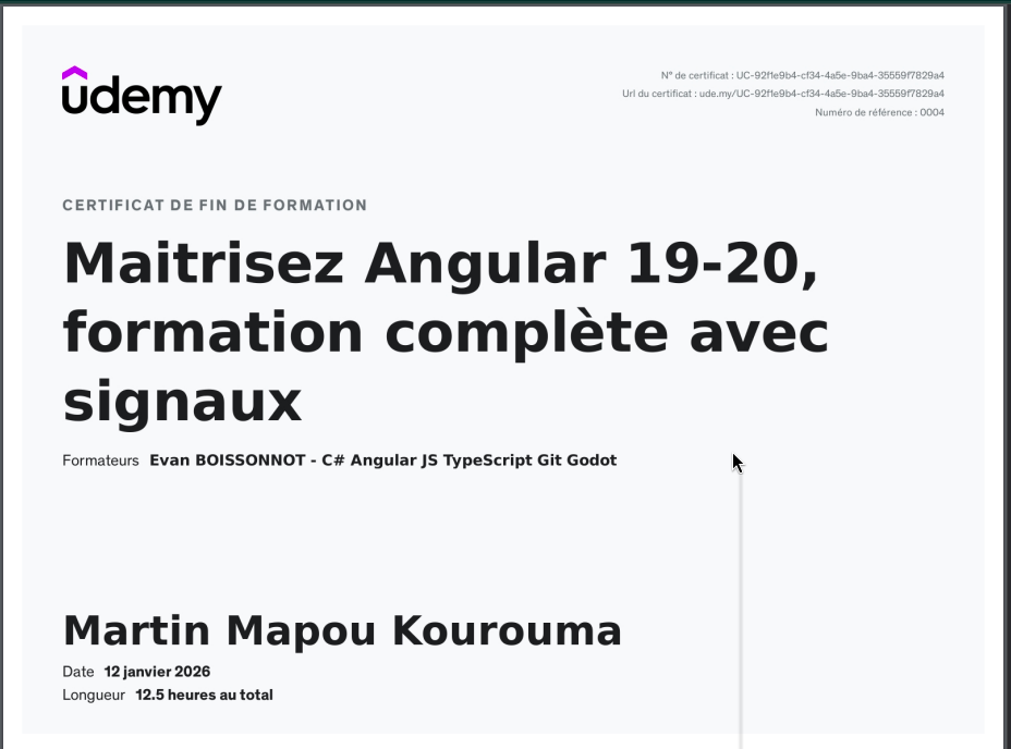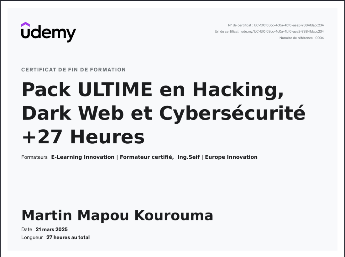 Je suis Martin Mapou, informaticien orienté développement logiciel et cybersécurité.