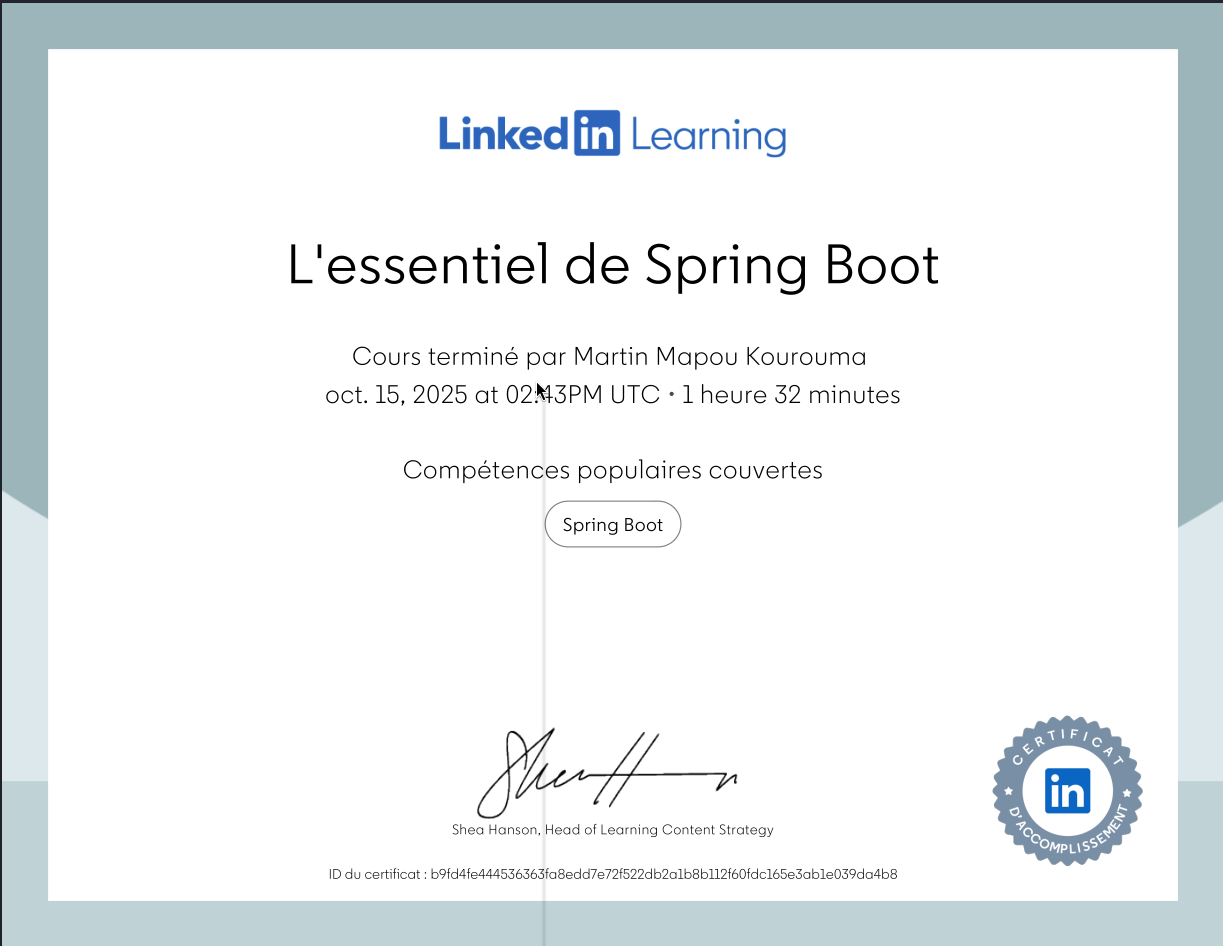 Mon objectif est de livrer des solutions fiables, évolutives et alignées sur les standards professionnels.